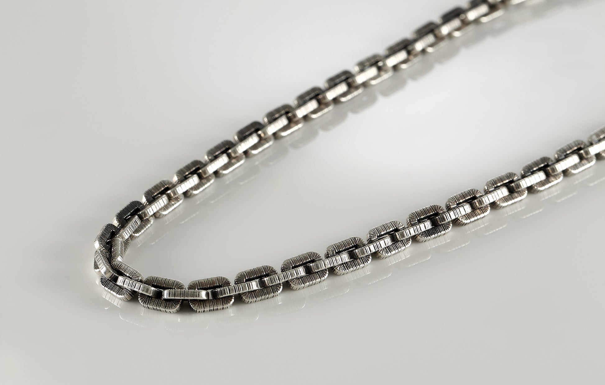 Each link has an organic texture, giving the necklace a bold yet timeless look.